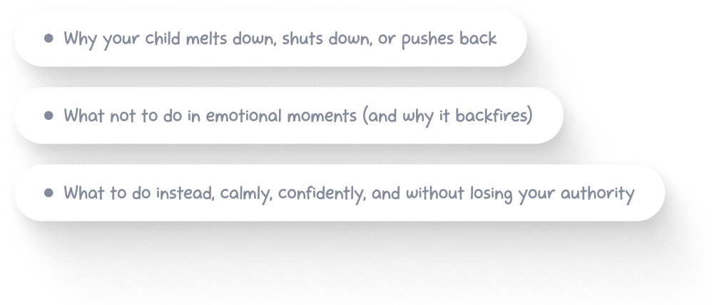 Once you understand what’s actually happening emotionally, in your child and in you, you stop guessing and start responding with calm, confident authority.